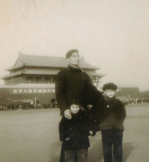 这是我所能找到的唯一的父母与我三人一起在中华文化学院门前合影照片