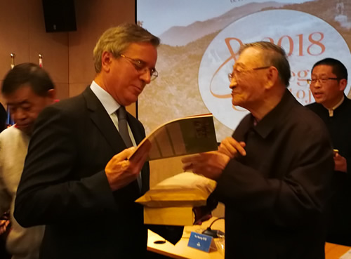 王怀祖教授向西班牙驻华大使卡内罗阁下赠送香港中华爱国英才联合会社团