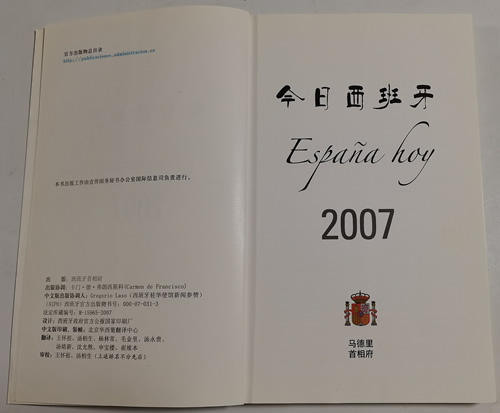 时任西班牙首相萨帕特罗为《今日西班牙2007》撰写了前言并签名