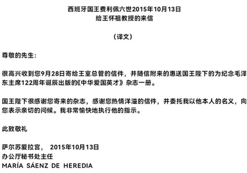 西班牙国王特写2封信表示对父亲赠送杂志的感谢